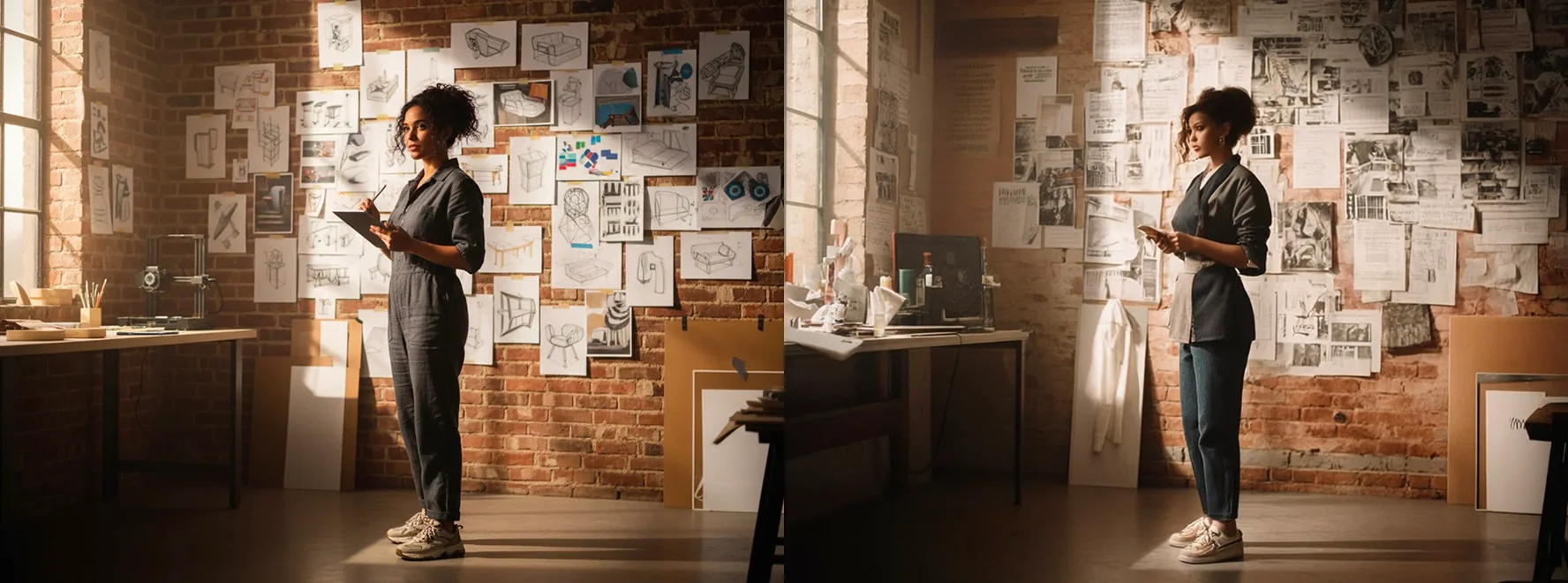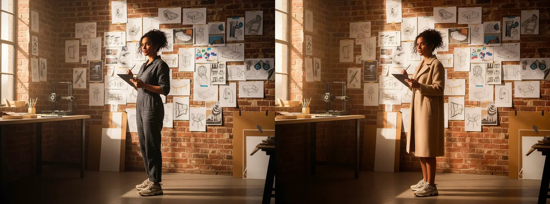 | 3. Character / Portrait Creative Editing | Text to Image | Test human composition accuracy and aesthetics. | “Portrait of a female designer in a studio with creative sketches on the wall, cinematic lighting, shallow depth of field.” |