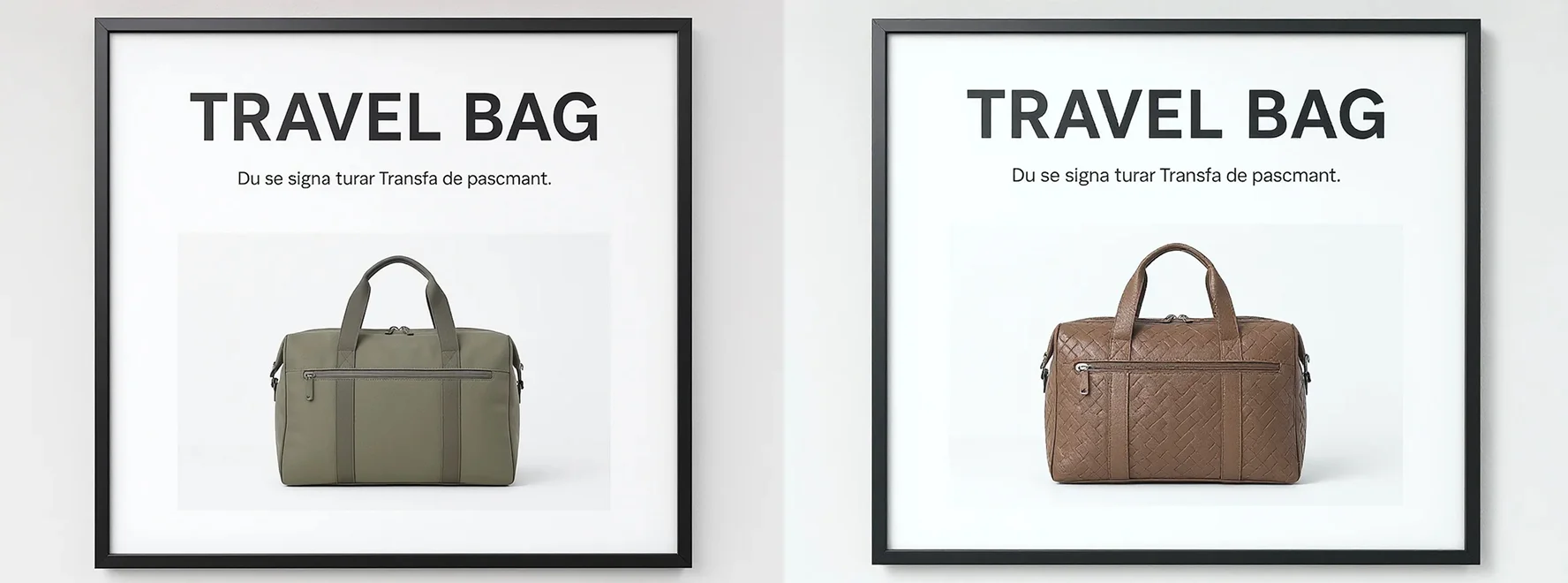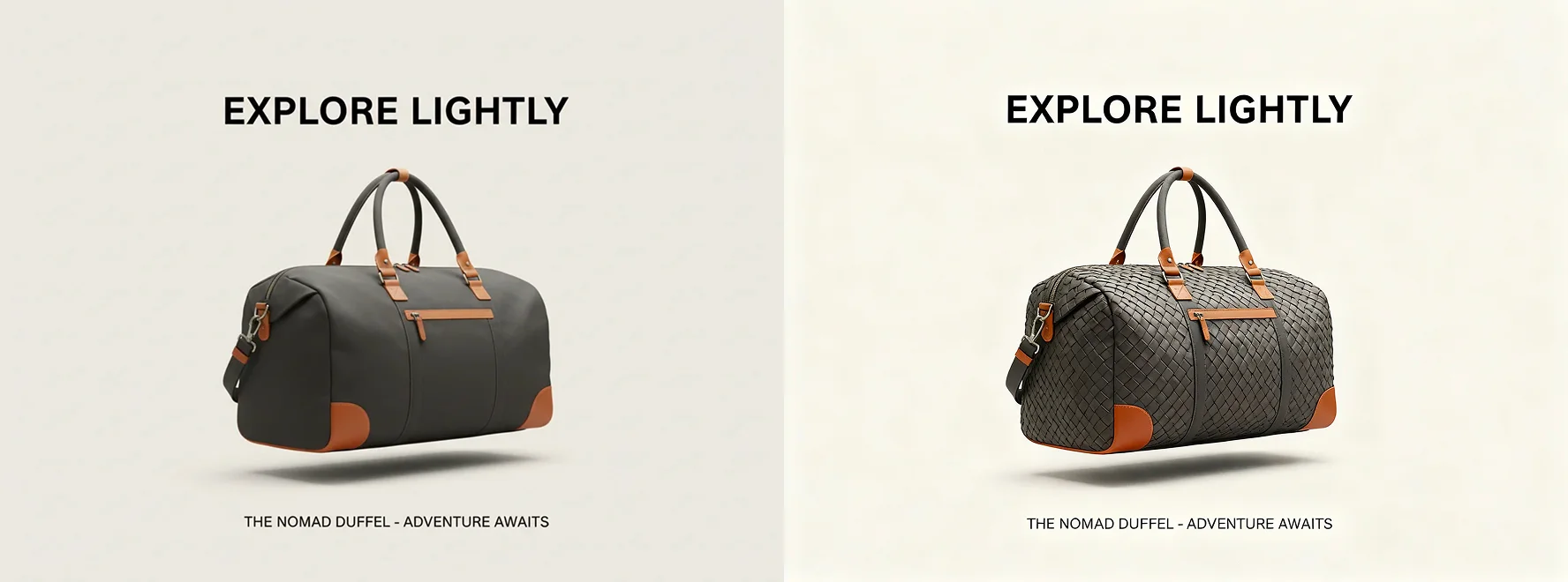 | 4. Marketing / Visual Storytelling Composition | Text to Image | Assess layout, typography balance, and realism. | “A minimalist advertisement poster for a travel bag, with clean background and product centered in frame.” |