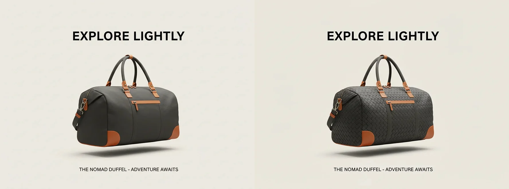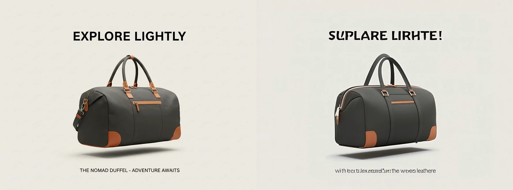 | 4. Marketing / Visual Storytelling Composition | Text to Image | Assess layout, typography balance, and realism. | “A minimalist advertisement poster for a travel bag, with clean background and product centered in frame.” |